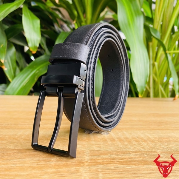 Mẫu thắt lưng được hoàn thiện tỉ mỉ với từng đường may chắc chắn. Màu đen sang trọng kết hợp đầu khóa kim xoay tạo nên phong cách mạnh mẽ và thanh lịch.
